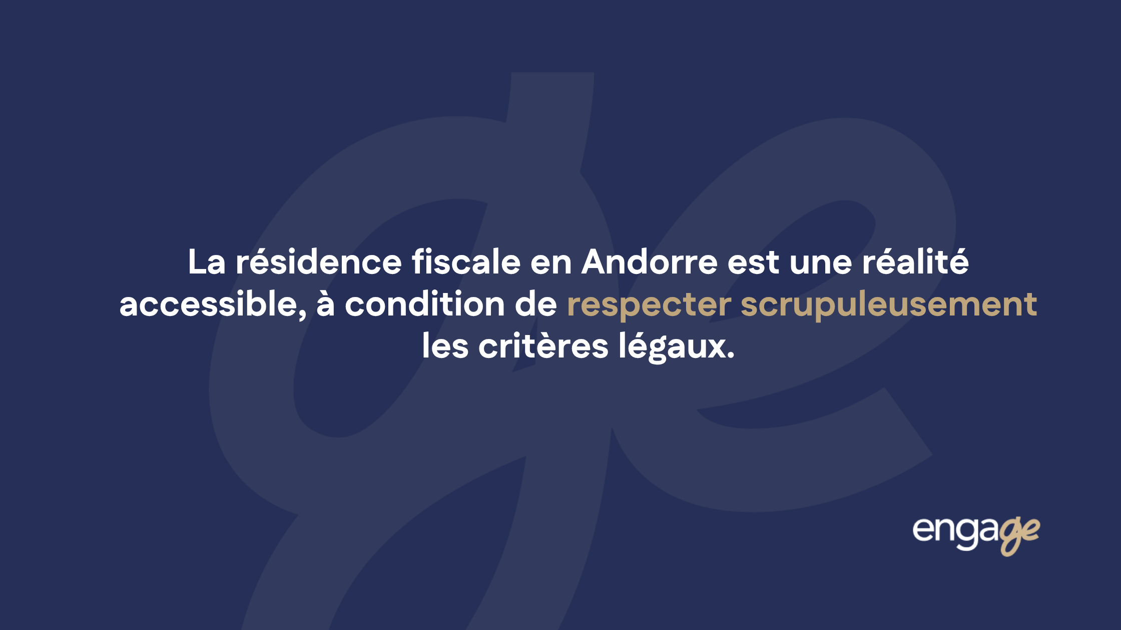 Chez ENGAGE, nous préparons avec nos clients un dossier complet pour démontrer, en cas de contrôle, que leur résidence fiscale est bien en Andorre :