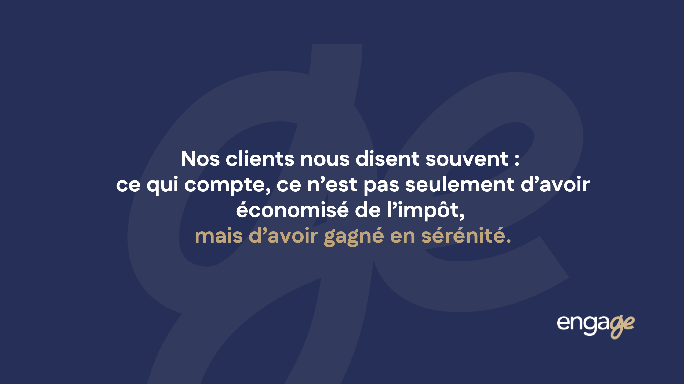 • Accompagnement complet par ENGAGE sur les aspects fiscaux, juridiques, bancaires et immobiliers.